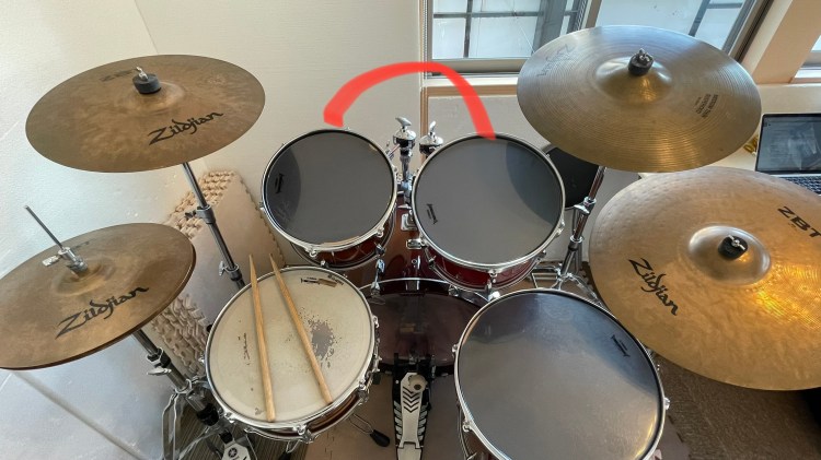 この時に右側のタム(ロータム)の方が深さがあるので、先にロータムをセッティングしてあげましょう!