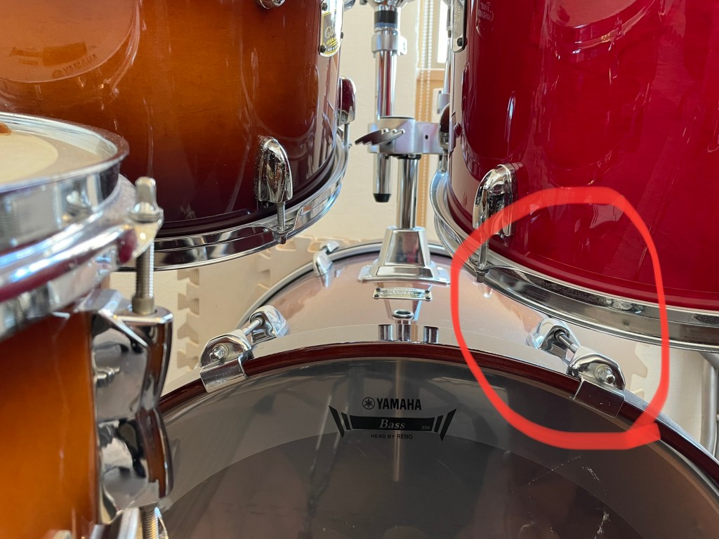 ※どちらの場合もタムがバスドラムと当たっていないか確認しましょう!(叩くたびに変な音が鳴りますし、楽器が傷つきます!!!基本的にみんなで共有なので、大事にしましょう)